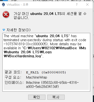 결과 코드: E_FAIL (0x8004005)