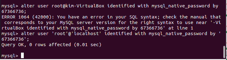 mysql> alter user 'root'@'localhost' identified with mysql_native_password by 'password';